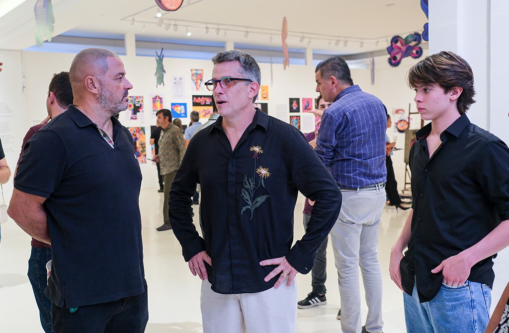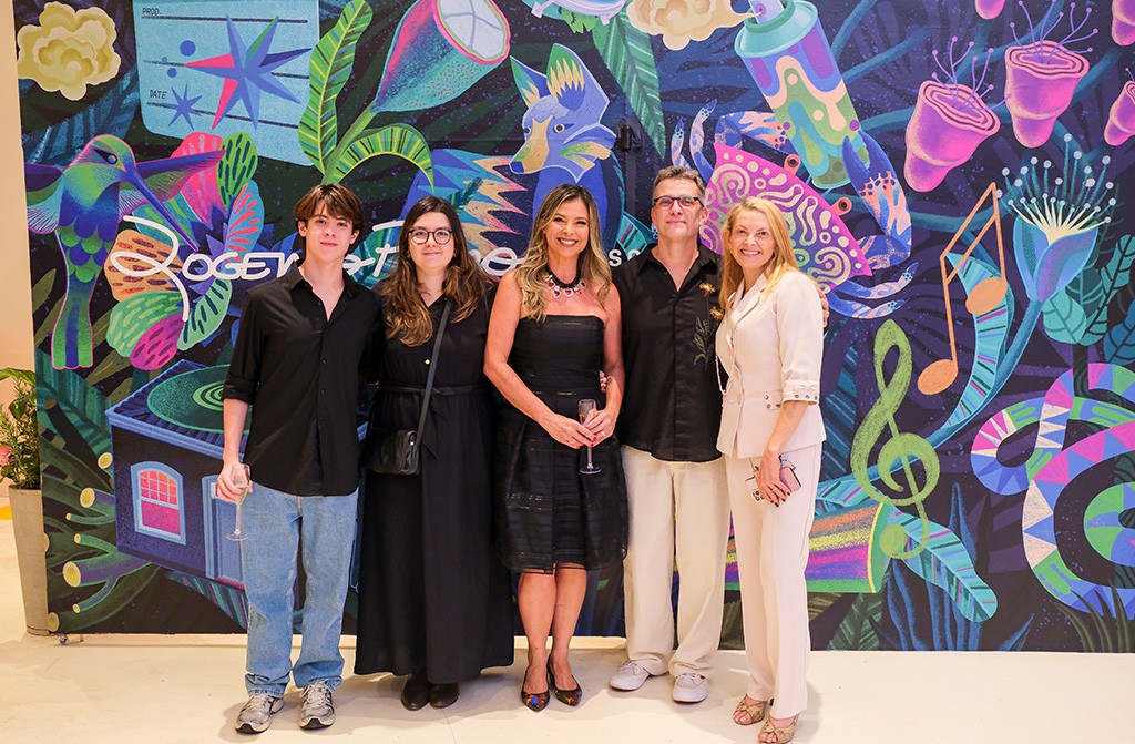 Rogério Pedro com os filhos Luí e Lorena, a esposa Luciane Moreira e a Secretária de Cultura de Campinas Alexandra Capriolli no vernissage de abertura da exposição.