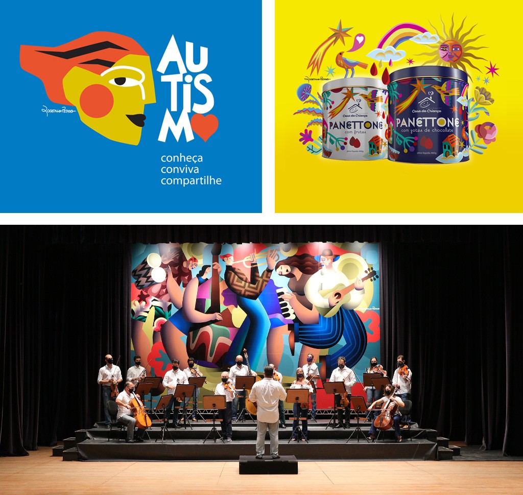 Formado em Artes Plásticas, Rogério possui sólida base acadêmica e transita por diversas técnicas na busca de expressar sua identidade marcante, seja em projetos que envolvem pinturas em telas e murais, seja em outras plataformas, como ilustrações editoriais e publicitárias, estampas de tecidos ou objetos impressos em grande escala.