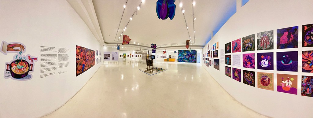 A mostra evidencia uma obra que transita entre múltiplas plataformas e ocupa diferentes contextos do espaço urbano, estando presente em galerias, livros, murais, objetos, estampas e coleções particulares, sempre celebrando o imaginário e a diversidade da cultura brasileira.